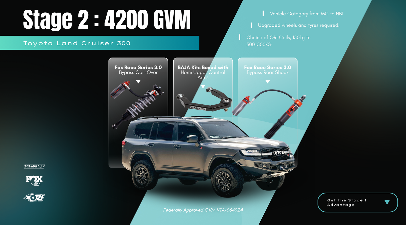 Stage 24200 GVM Toyota Landcruiser LC300 with Fox 3.0 Factory Race Suspension Federally Approved VTA-064924