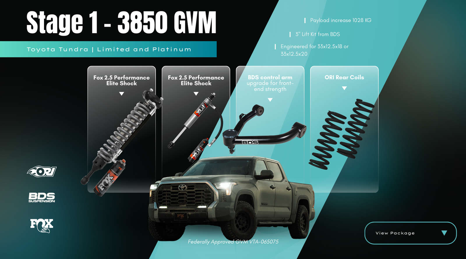 If you've recently purchased a Toyota Tundra from Toyota Australia, Offroad Industries has an ideal solution to enhance your truck's capabilities. Our Federally Approved 3850 GVM package is designed to boost your vehicle's performance. Additionally, our team is actively developing an even higher-rated GVM option, targeting 4200 or 4300, so please keep an eye out for upcoming updates.